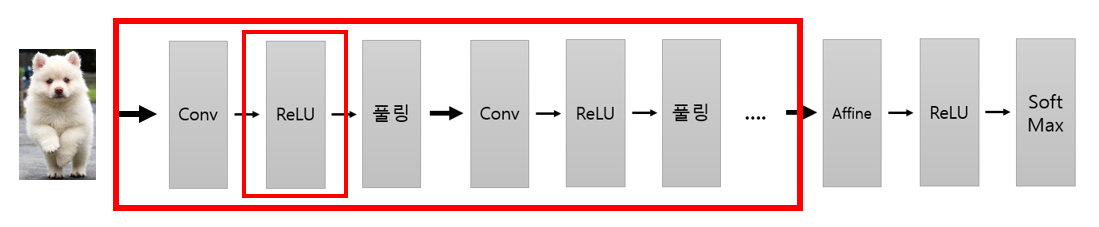 필터 커널을 이용해 Convolution 계산이 완료되면 특성 지도의 각 픽셀에 있는 데이터를 활성화 함수에 적용해 좀 더 판별력 있게 만든다. 여러 활성화 함수 중, ReLU함수를 많이 사용이 되는데, 이를 이용해 입력데이터를 적절히 활성화까지 하면 필터링 과정이 완료된다.