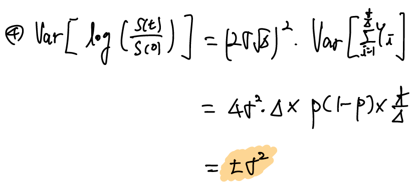 = $(2\sigma\sqrt{\Delta})^2$ $Var(Y)$ = $4 \sigma^2 \Delta$ $p(1-p)$ $\frac{t}{\Delta}$