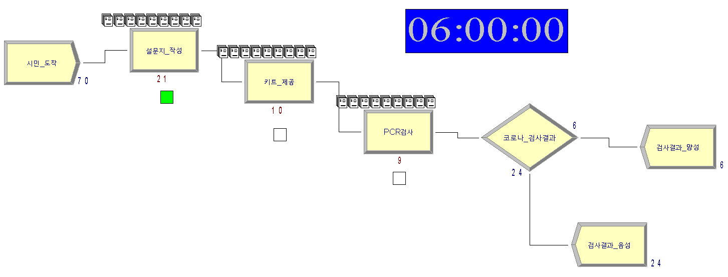 코로나 임시선별 검사소 시뮬레이션 모델 정의서는 다음과 같다.