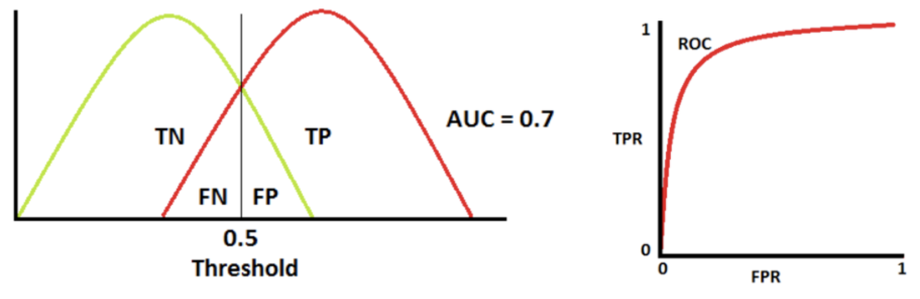 TPR과 FPR은 서로 보완적인 성격을 가지기 때문에 모델의 양성클래스 감지 능력과 음성클래스 감지 능력을 동시에 평가할 수 있다.