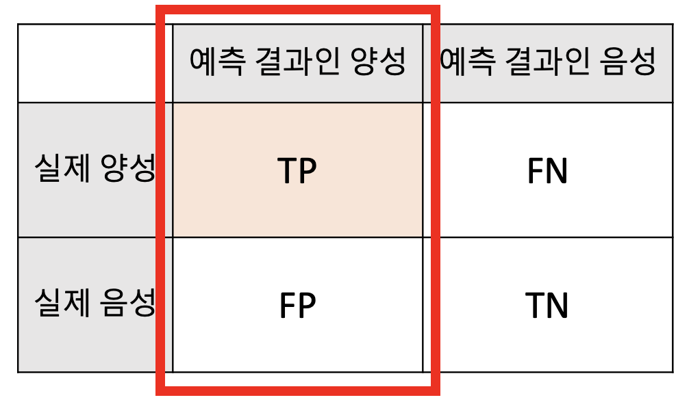 | 실제 음성 값 | FP (False Positive) | TP (True Positive) |