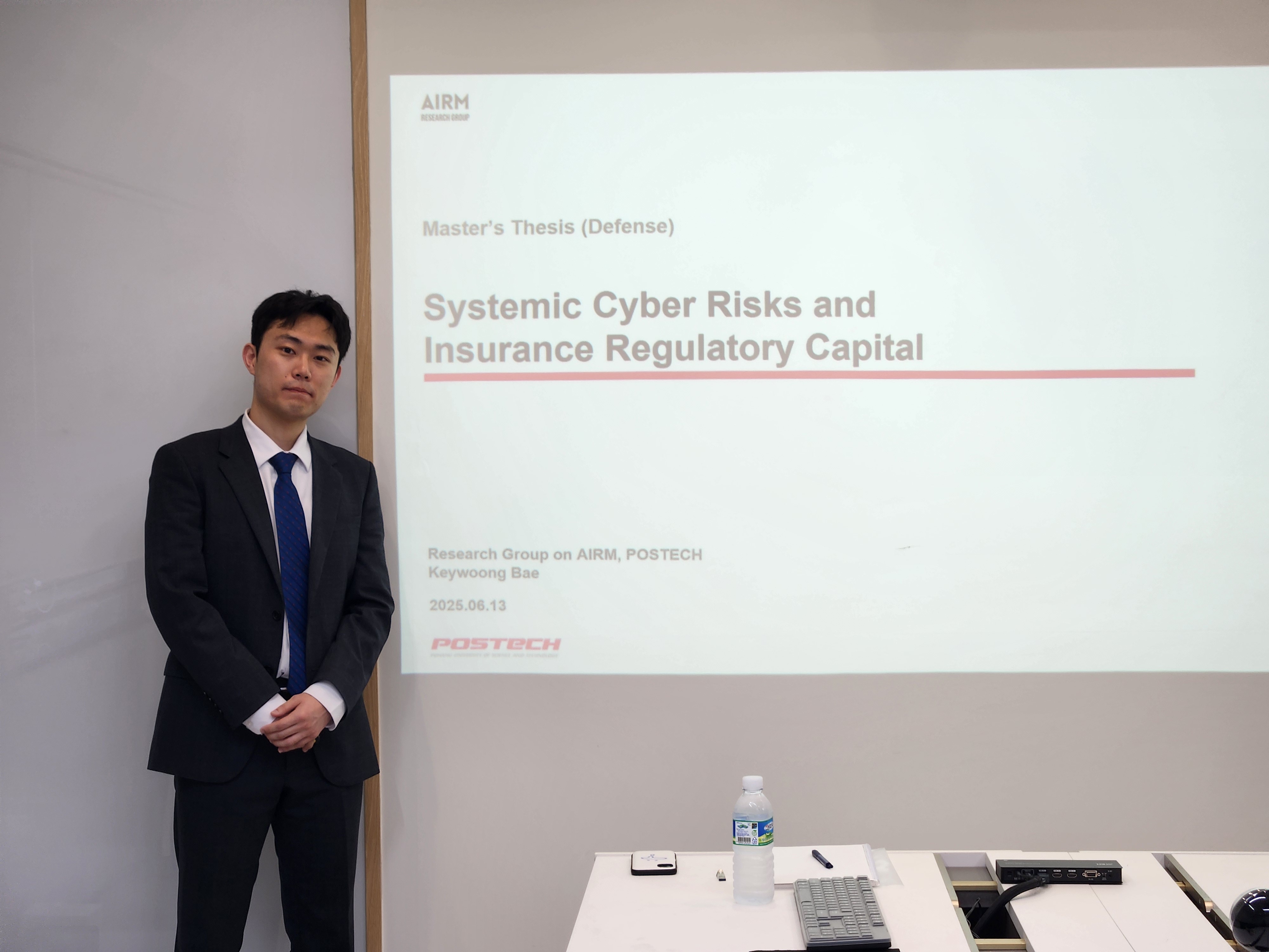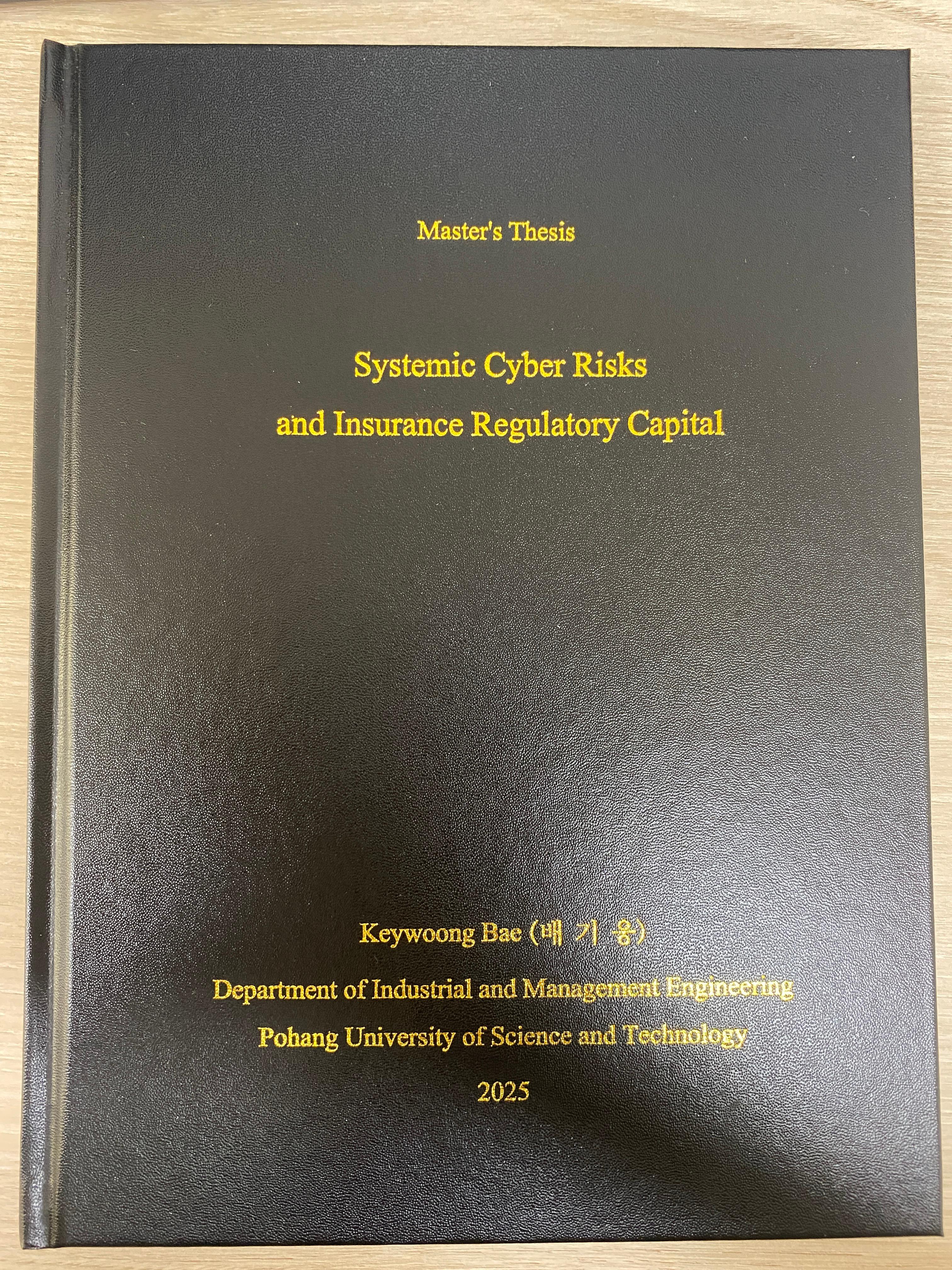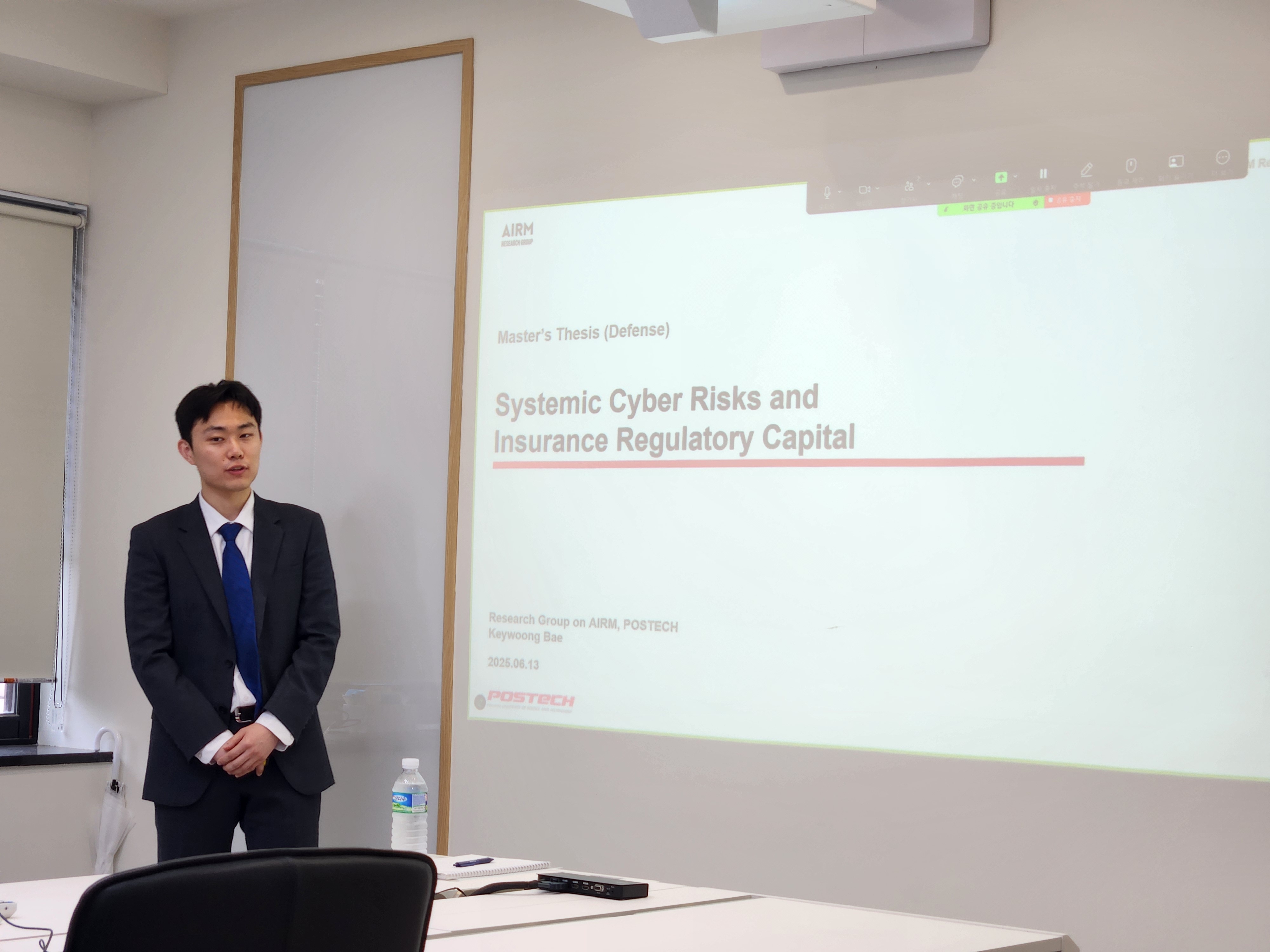 6월 13일에 석사학위 디펜스를 하였다. 제목은 "Systemic cyber risks and insurance regulatory capital"이었으며, 한국인 교수님 두 분과 외국인 교수님 한 분 앞에서 영어로 학위논문을 발표하였다.