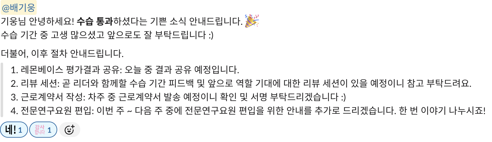 2025년도는 사회로 첫 발을 내딛게 해준 소중한 한 해였다. 대학원 학위과정을 마치고, 전문연구요원으로 편입하여 본격적으로 직장생활을 시작하였다. 올 한해도 역시 많은 사람들을 만나고 많은 경험을 한 한해였으며, 그 과정에서 내가 느꼈던 것들을 글로 정리해보았다.