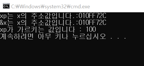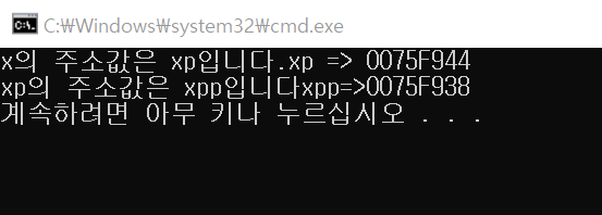 cout << "x의 주소값은 xp입니다." << "xp => " << xp << endl;;