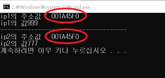 cout << "ip2의 주소값 : " << ip2 << endl;