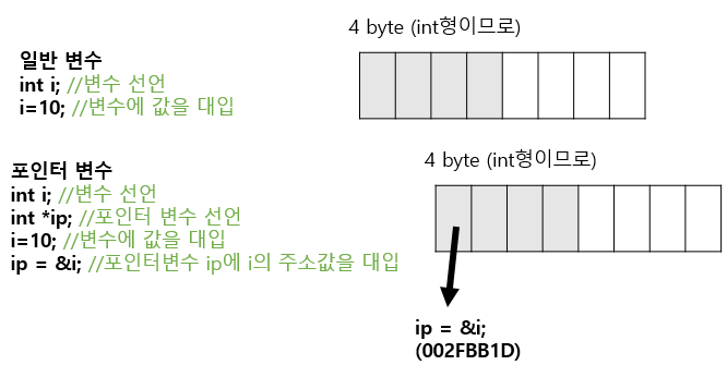 ▶ 포인터변수란 data가 저장되어있는 메모리의 시작주소를 값으로 갖는 변수이다.