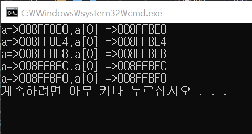 //a의 주소값과 a[0]의 주소값을 출력한다.