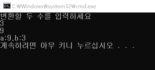 포인터변수로 두 변수의 값을 변환하는 예제