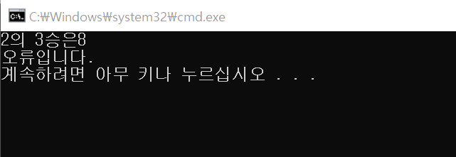 cout << "2의 -3승은 " << e << "입니다" << endl;//오류 발생!