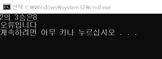 ▶ 오류가 발생한다!!!! 2의 -3은 1/8인데 이런 기초적인 실수를 컴퓨터가 하다니....! 이렇게 예상치도 못한 오류가 발생하는 경우를 대비하기 위해 예외 처리기를 사용한다.