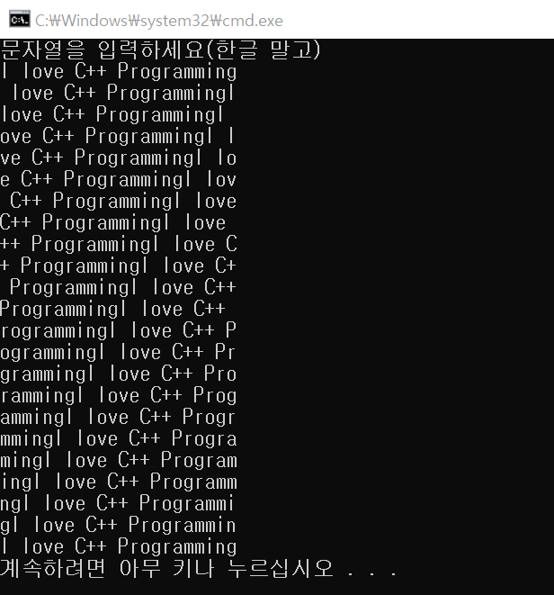 cout << "문자열을 입력하세요(한글 말고)" << endl;