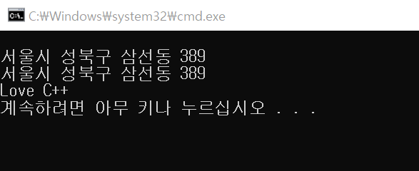 string address("서울시 성북구 삼선동 389");